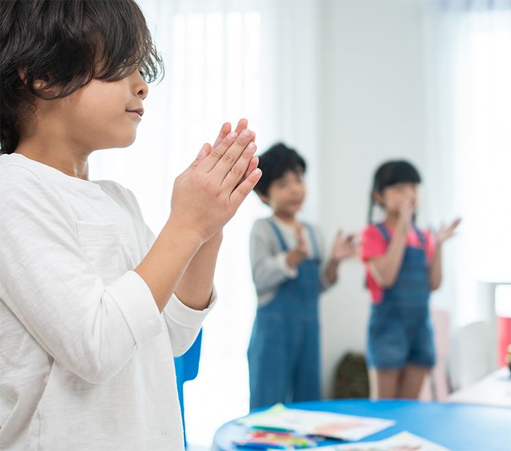 Naam meditation was offered to families several days a week by experienced instructors. In many instances, parents, translators, and family members also participated. Specific mantra soundtracks, “Ra Ma Da Sa”, “Guru Ram Das”, and “I Am” provided by Dr. Joseph Michael Levry, were played on an MP3 player in the background while an experienced meditation teacher taught and led the mantras. These mantras are used traditionally to build self-esteem, peace, and resilience. Mudras (hand gestures) and gentle breathing patterns (left nostril breathing, long exhalation, alternate nostril breathing) were interspersed with mantras to help relieve tension and enhance relaxation and focus. On an average, the meditation instructor stayed with the patient for approximately 30 minutes.